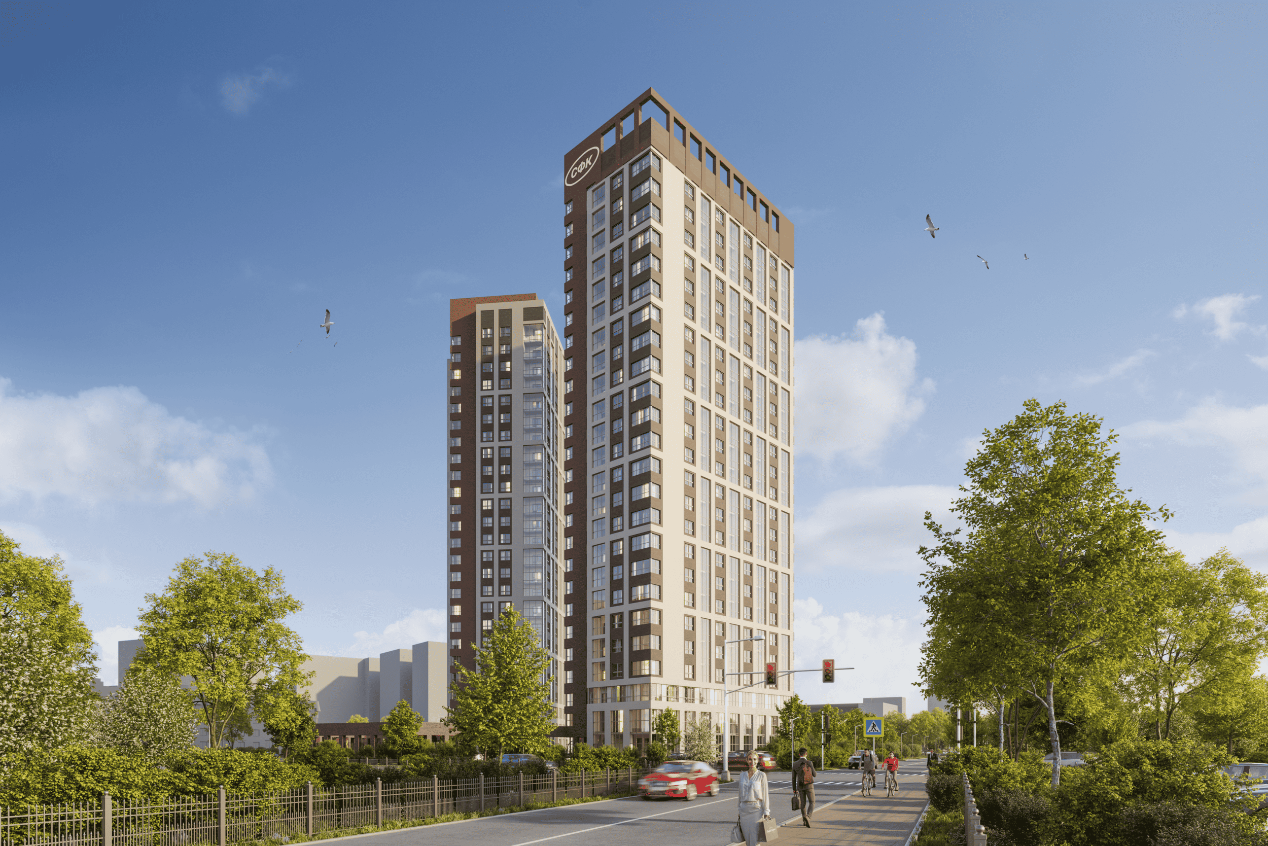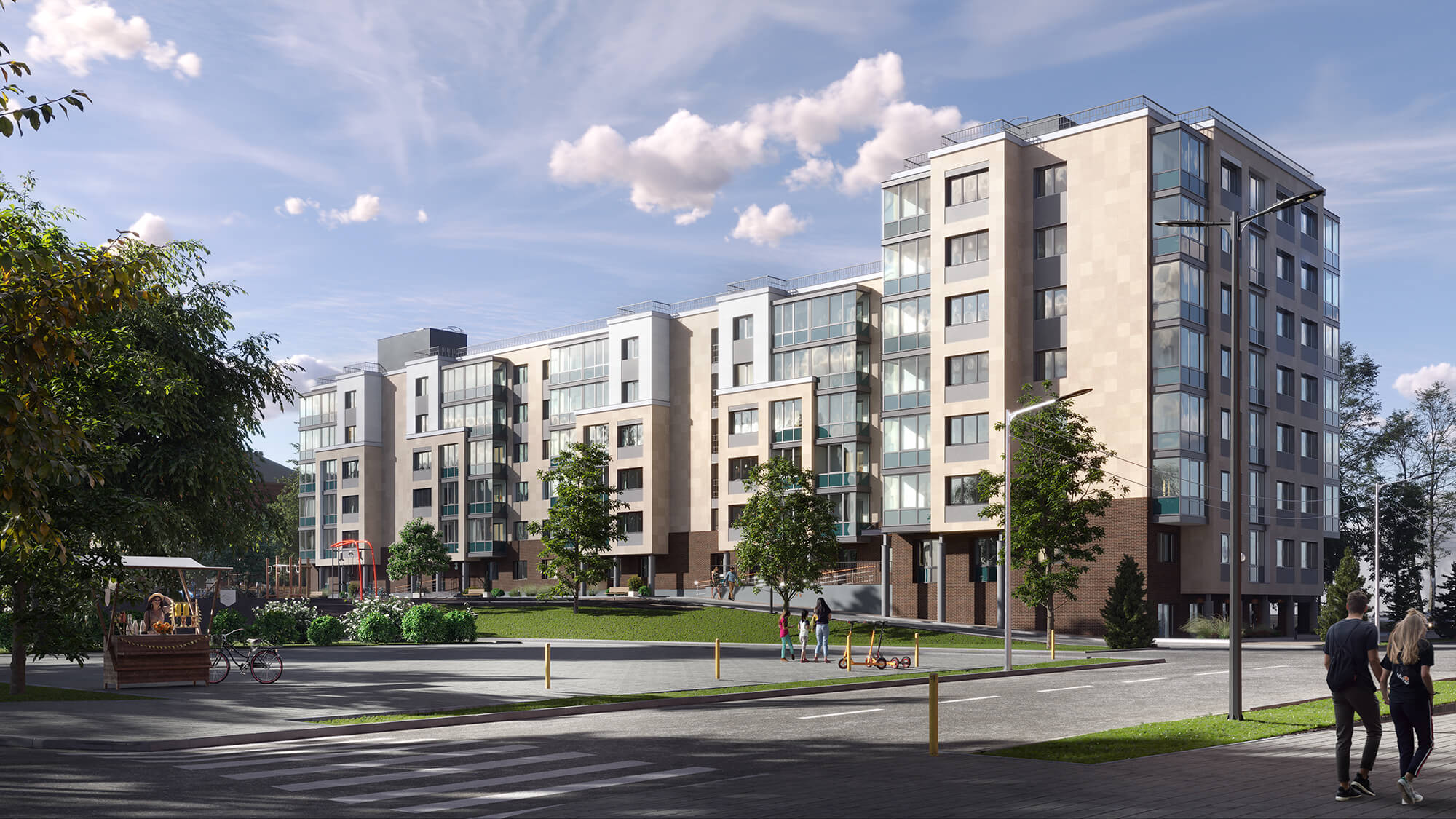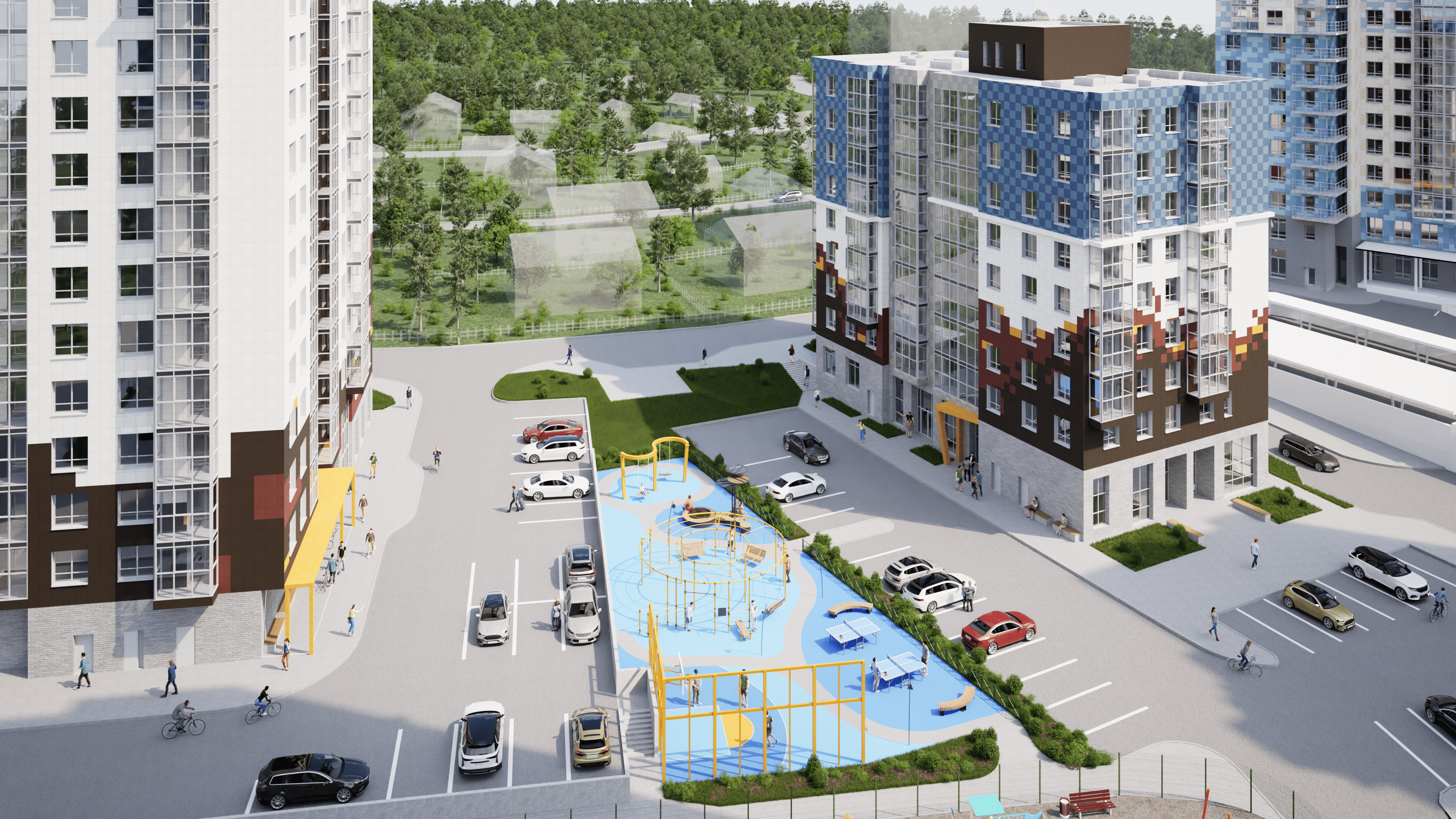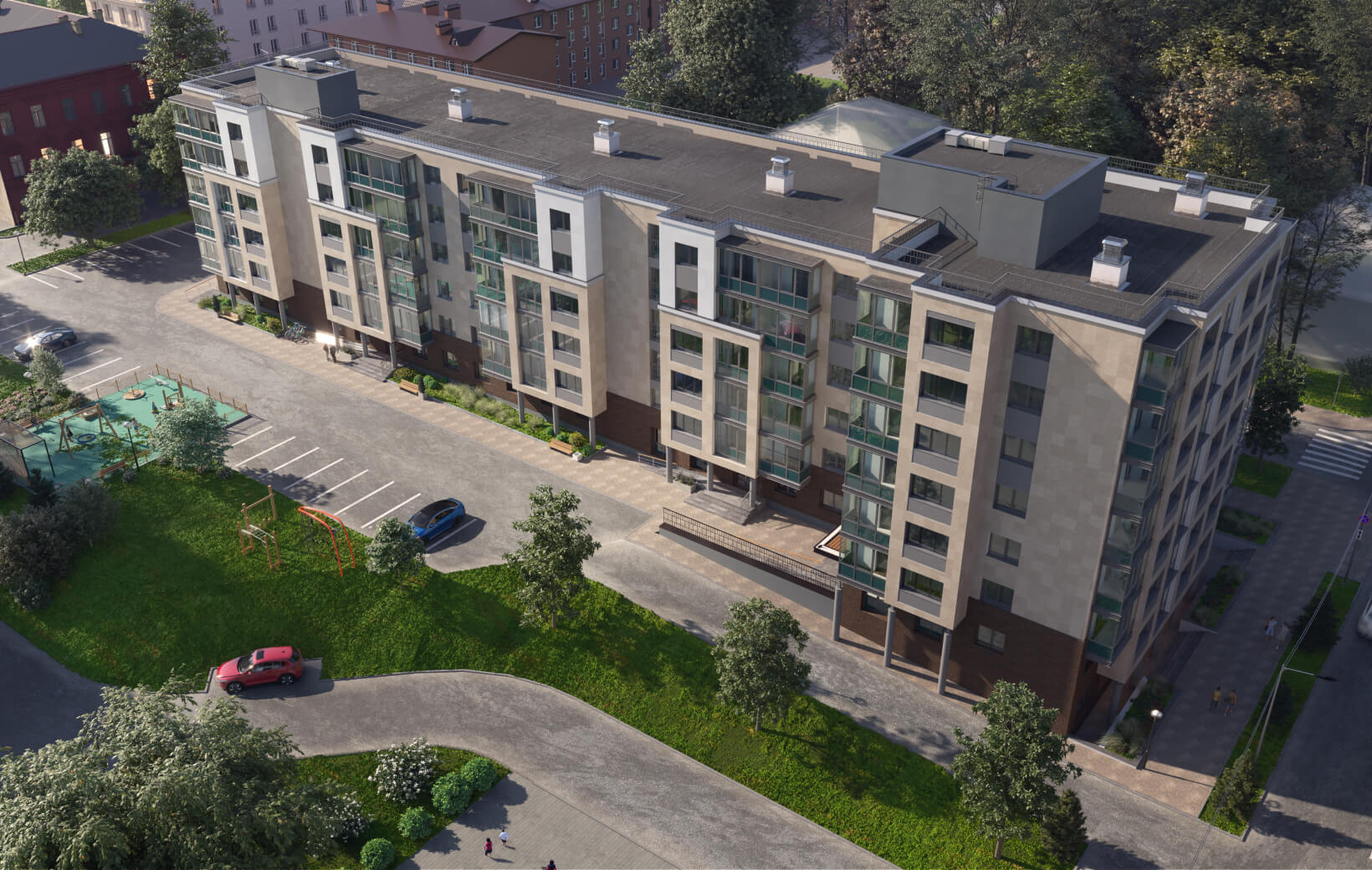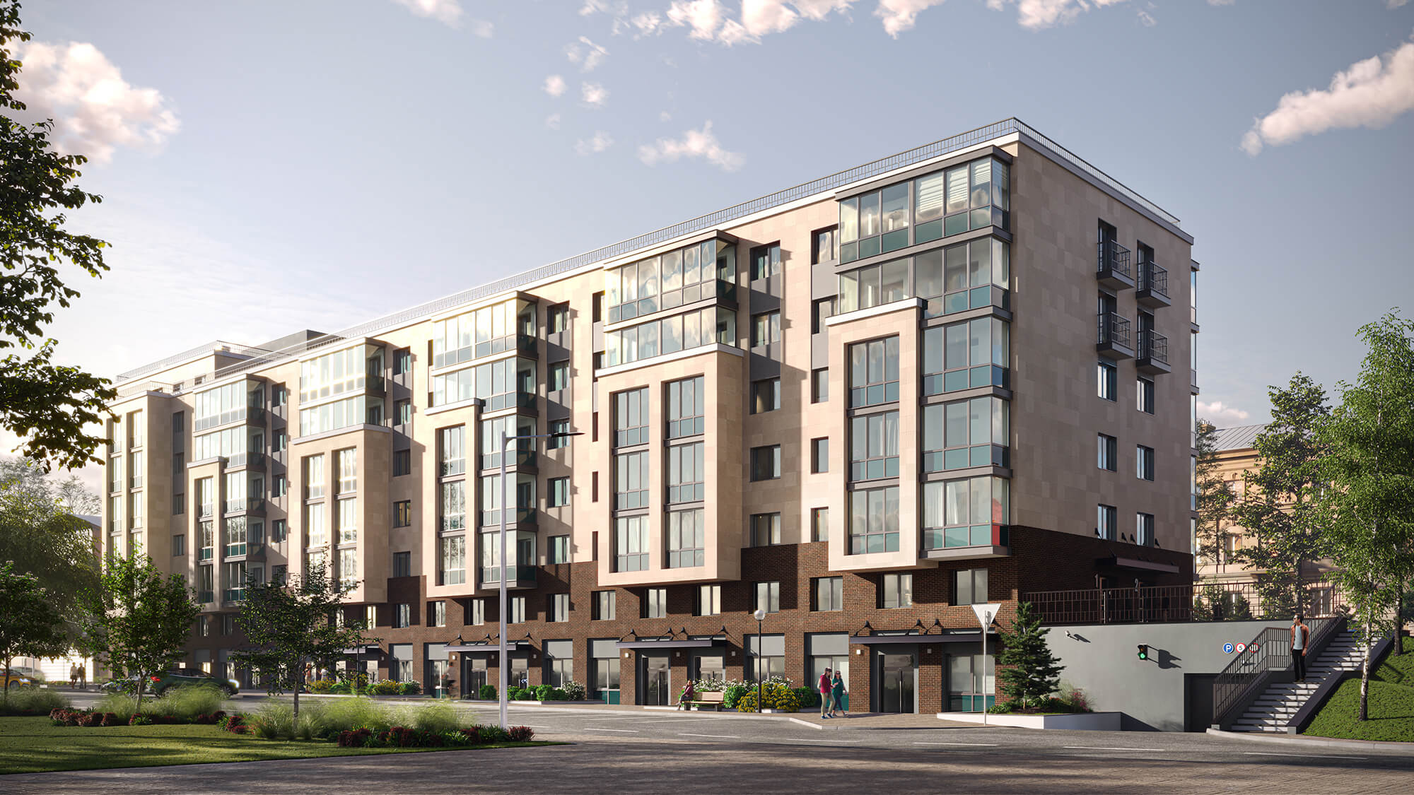 Просторный зеленый двор с ландшафтным дизайном закрыт для автомобилей и станет идеальным местом для семейного отдыха. Проект разработан одним из ведущих архитектурных бюро Петрозаводска и продуман до мельчайших деталей: пятиэтажный жилой комплекс состоит из 8 одноподъездных секций по 27-30 квартир, оснащен технологичными лифтами и кладовыми. Для автомобилистов предусмотрена охраняемая парковка за пределами двора. Комбинированные фасады с панорамным остеклением и разноцветными французскими балконами, парк и вся инфраструктура центра города обеспечат спокойствие и единение с природой.