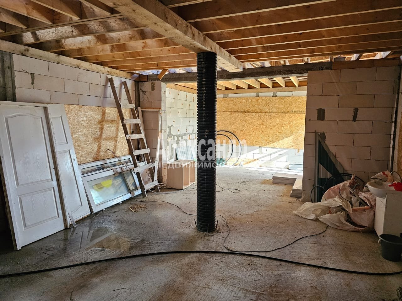 Построен двух этажный дом 200 кв.м( пеноблок и дерево) под крышей. Дом на 15 сваях и заливочной плите. Все коммуникации подведены в дом. Ещё не вставлены окна и двери и не утеплена крыша. Без отделки. Не зарегистрирован. Строили для себя.